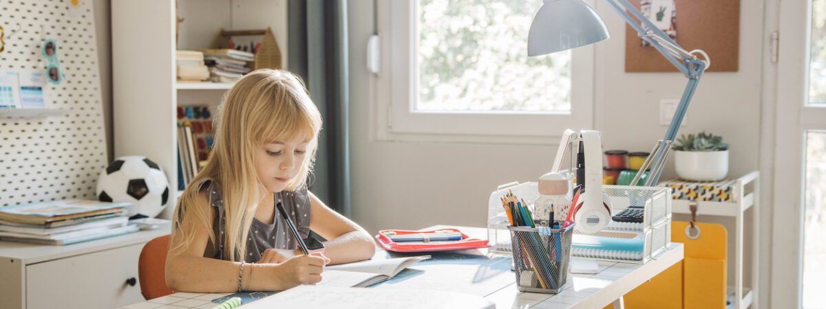 A quiet environment helps your child stay focused, but we all know that’s not always realistic in a busy home.